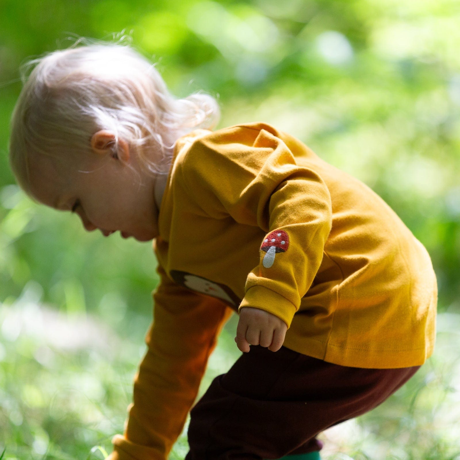 These super soft tees come with colourful applique designs little ones will love. This isn't your ordinary t-shirt fabric, our interlock cotton is soft and thick, which makes this a great top for the cold winter months, plus the breathable organic cotton won't irritate your child's skin. This cotton is also very robust, so will keep its shape and colour wash after wash so they can wear their new favourite t-shirt day after day! Match with comfy joggers, leggings or trousers for their next adventure.
