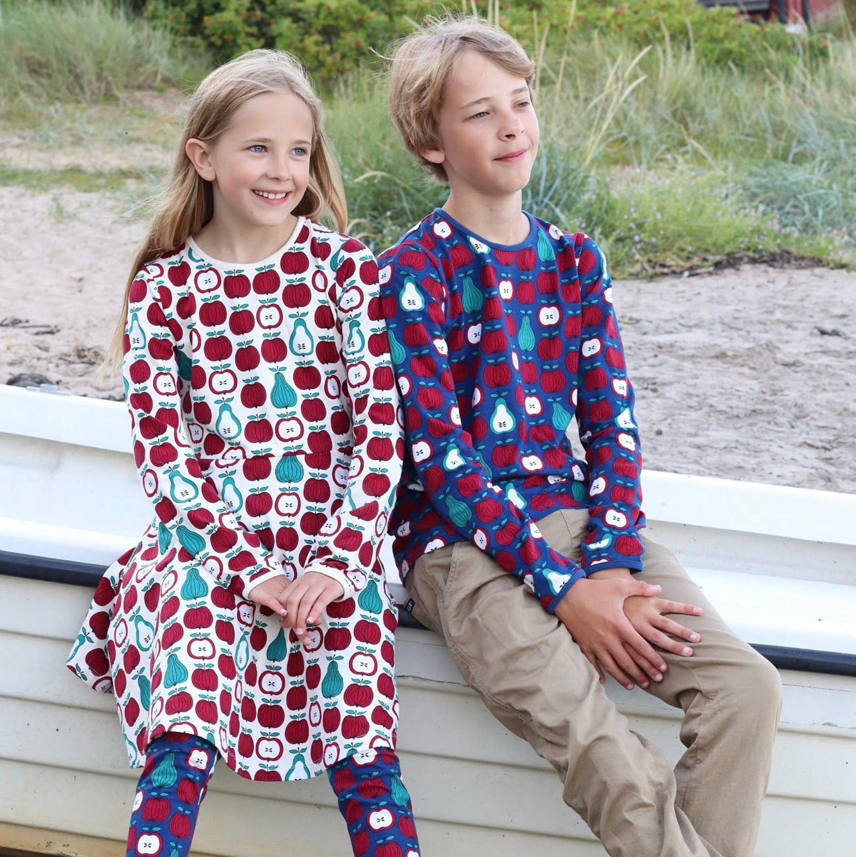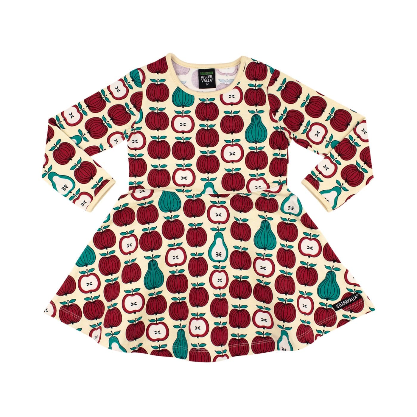 Villervalla twirl dress in jersey cotton, oeko-tex certified material. Taping around neck and sleeves for a great fit.