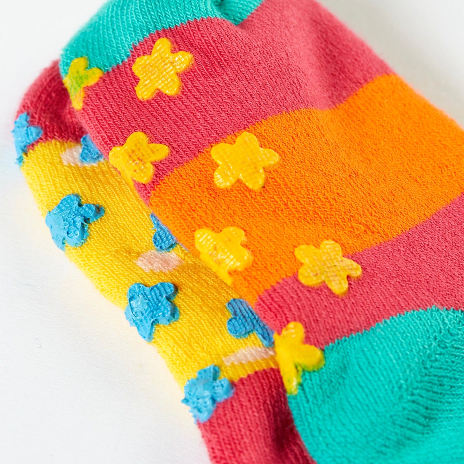 Ready to tackle every adventure, Frugi's Grippy Socks 2 Pack are perfect for everything from those first steps to conquering the couch! With playful prints on the soles that provide grip for every leap, these colourful terry socks are made from organic materials - soft, snuggly, and gentle on delicate skin for tiny explorers!
