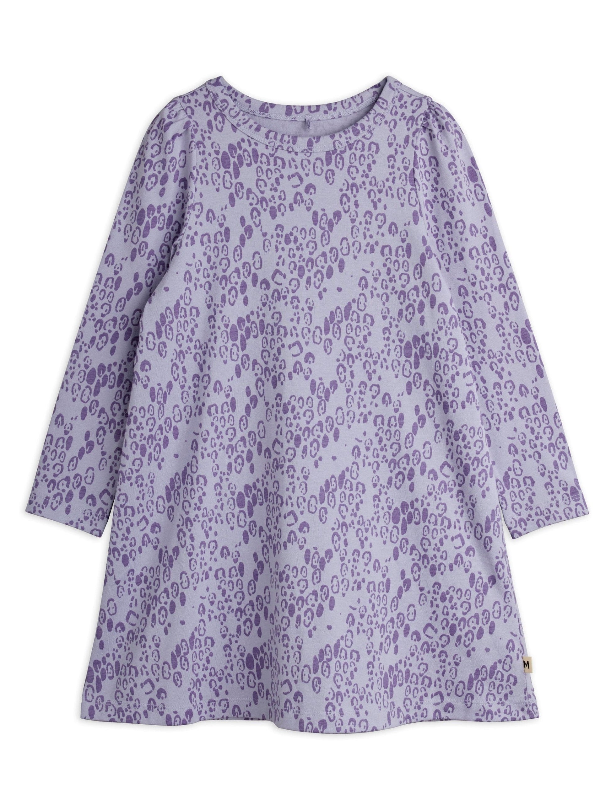 Mini Rodini puff-sleeve dress made from GOTS-certified organic cotton with a hint of stretch. Designed in an A-line shape with binding at the neckline.