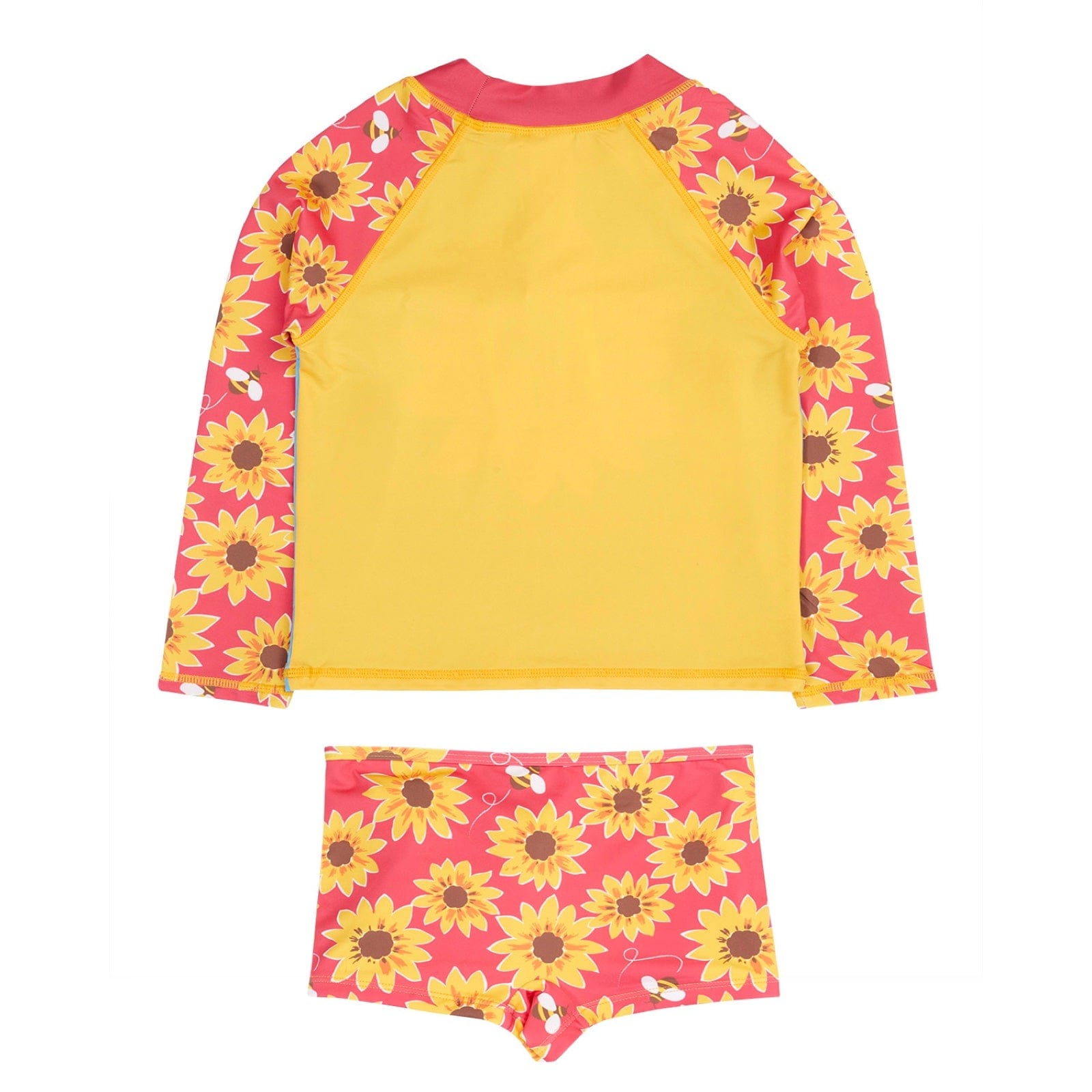 This sunny duo keeps little ones covered with a high neckline and long sleeves, ready for seaside adventures or pool antics. The matching shorts have a soft mesh lining and stretchy waistband for all-day comfort, meaning they’ll only want to leave the beach when the tide comes in!