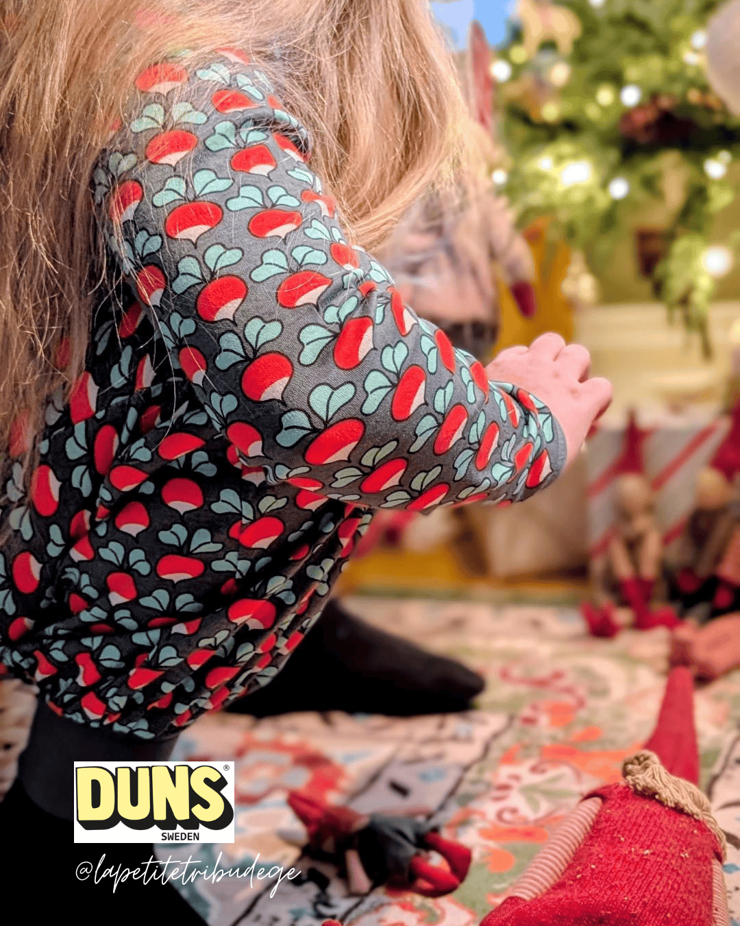 DUNS organic cotton top for kids comes in radish all-over print. This long-sleeved top for babies and children is made from super soft and comfy 100% GOTS Certified organic cotton, which is gentle and kind to eczema-prone and sensitive skin.