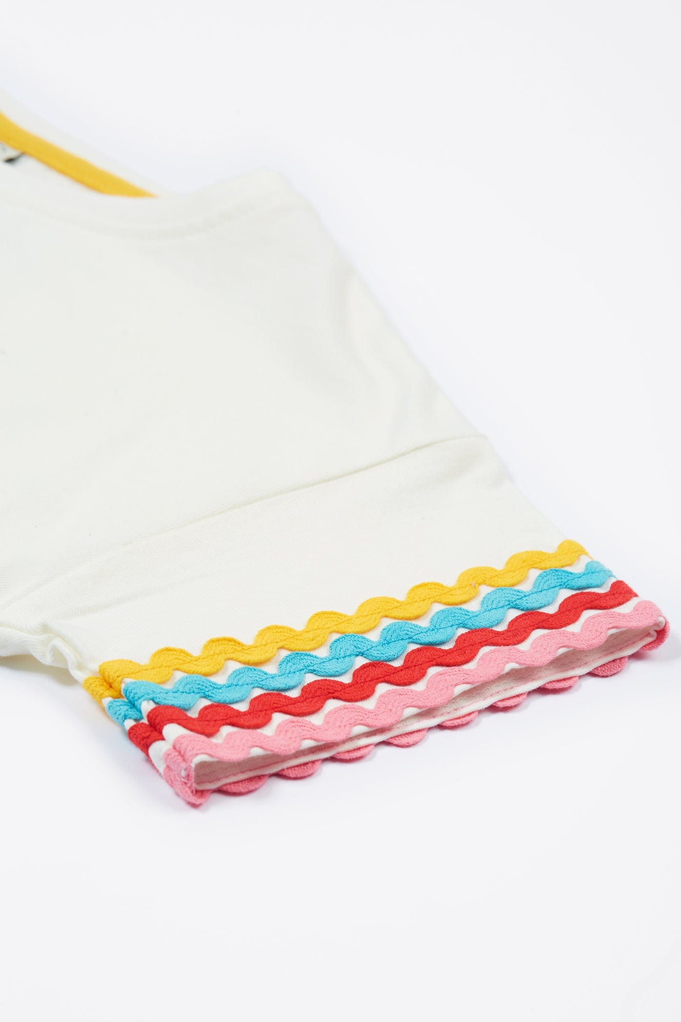 A must-have for little wardrobes this spring, Frugi's Ric Rac T-Shirt features pretty rainbow-coloured ric rac sleeves – perfect for pairing with shorts or skirts. Crafted from soft GOTS certified organic cotton, this kids top is gentle against the skin and super durable – for endless adventures in the sunshine.